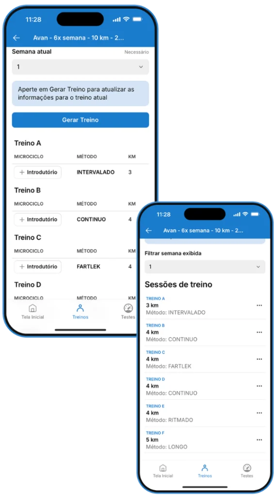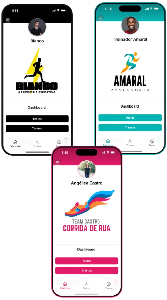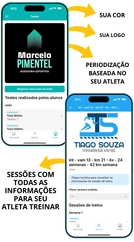 Ofereça uma experiência profissional e inteligente, direto no celular, com planos que se ajustam automaticamente ao perfil de cada atleta.